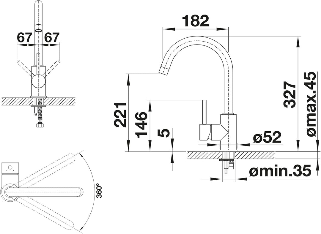 - Erweiterter Aktionsradius durch 360° schwenkbaren Auslauf
