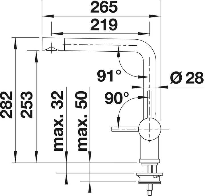 - Hoher Auslauf für leichtes Befüllen von Töpfen und Vasen