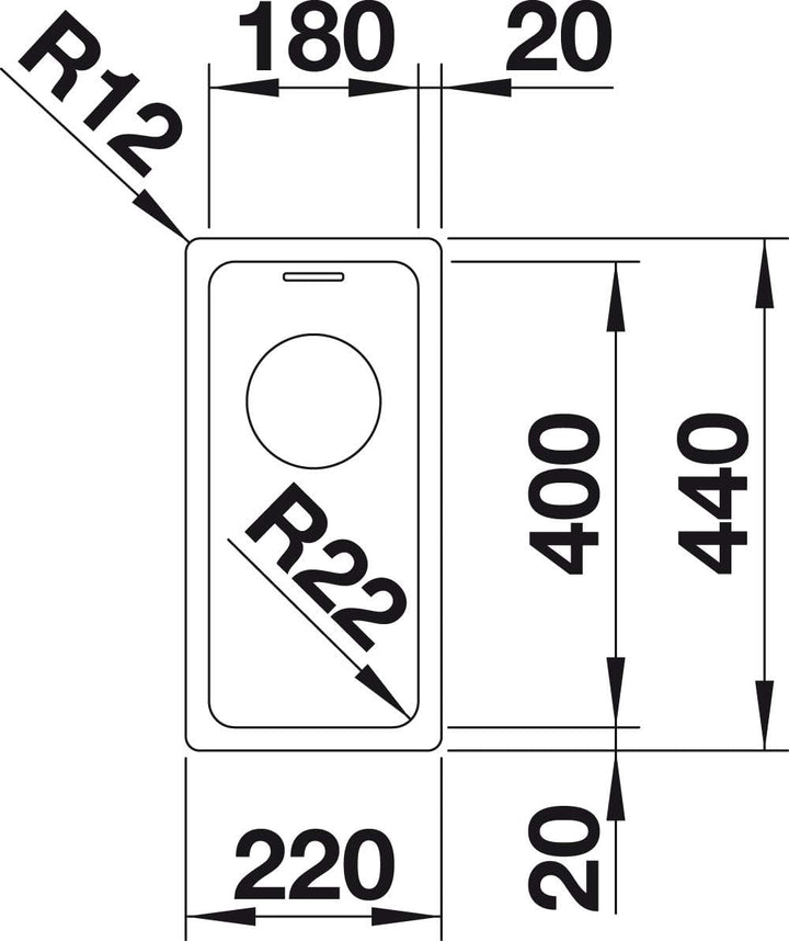 - Aussen-Abmessungen 220 x 440 mm / Beckentiefe 130 mm / Mindestbreite des Unterschranks: 30 cm - detaillierte Informationen zum Ausschnitt erhalten Sie auf der BLANCO Website