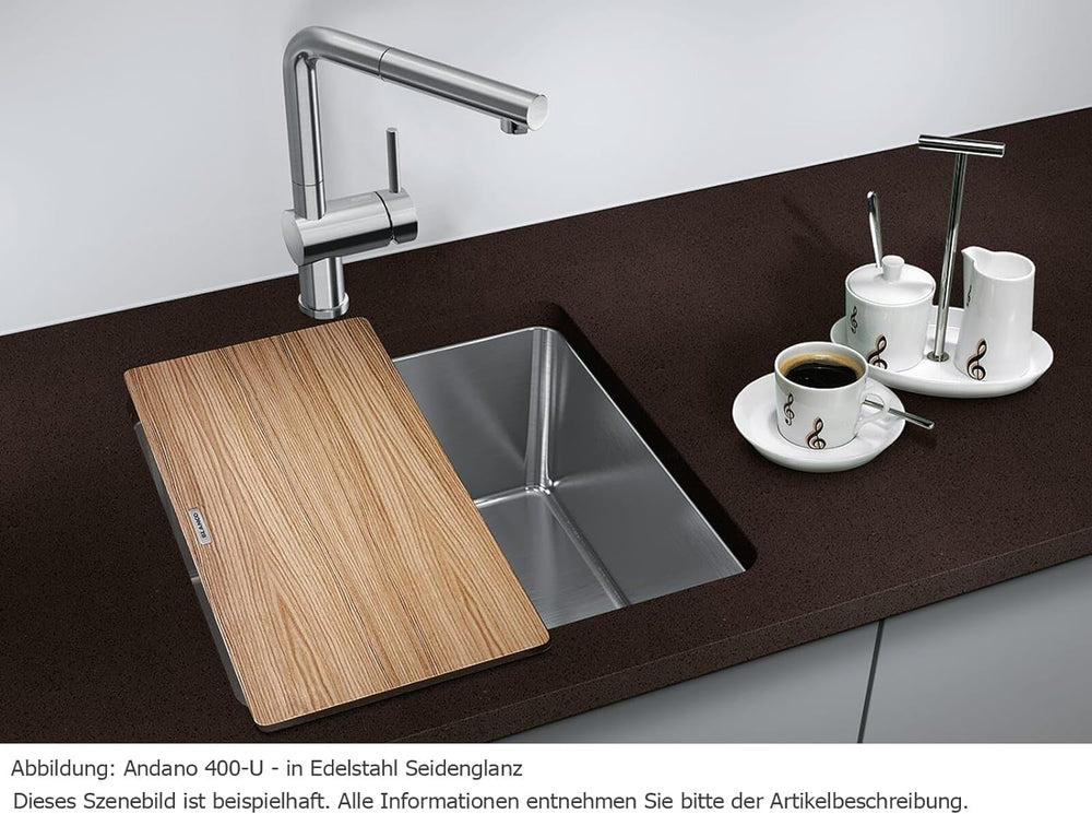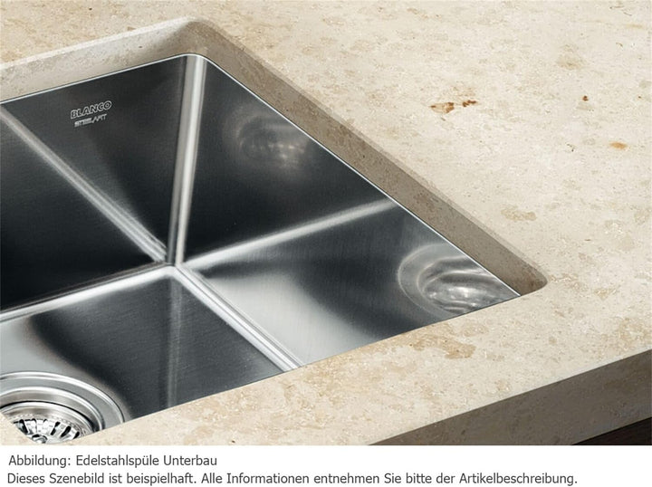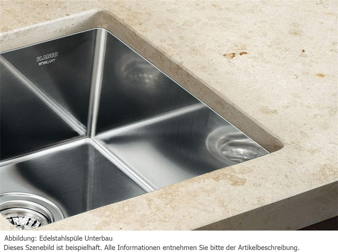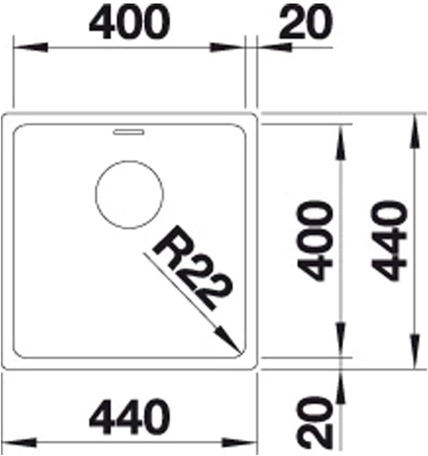 - Aussen-Abmessungen 440 x 440 mm / Beckentiefe 190 mm / Mindestbreite des Unterschranks: 45 cm - detaillierte Informationen zum Ausschnitt erhalten Sie auf der BLANCO Website