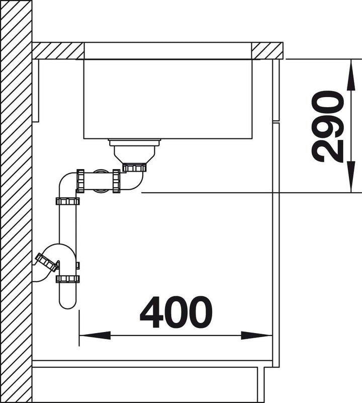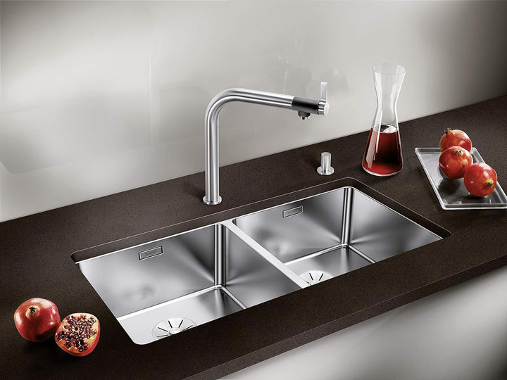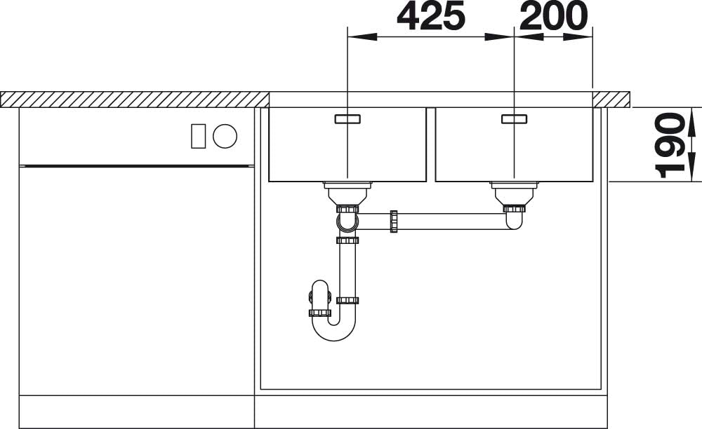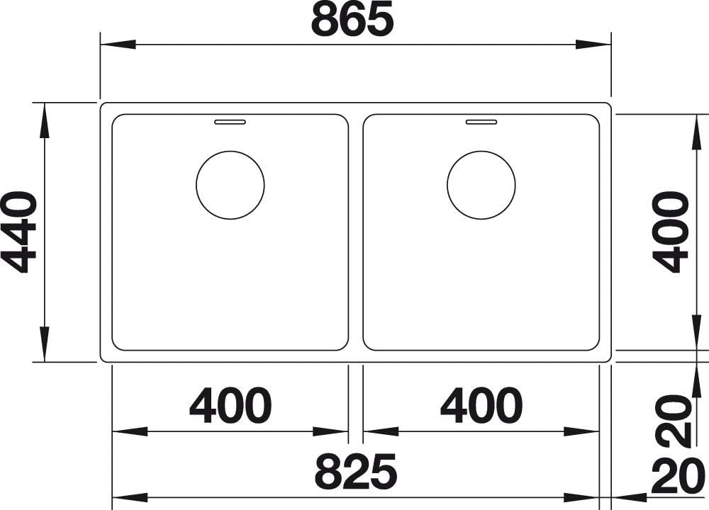 - Aussen-Abmessungen 865 x 440 mm / Beckentiefen 190 + 190 mm / Mindestbreite des Unterschranks: 90 cm - detaillierte Informationen zum Ausschnitt erhalten Sie auf der BLANCO Website