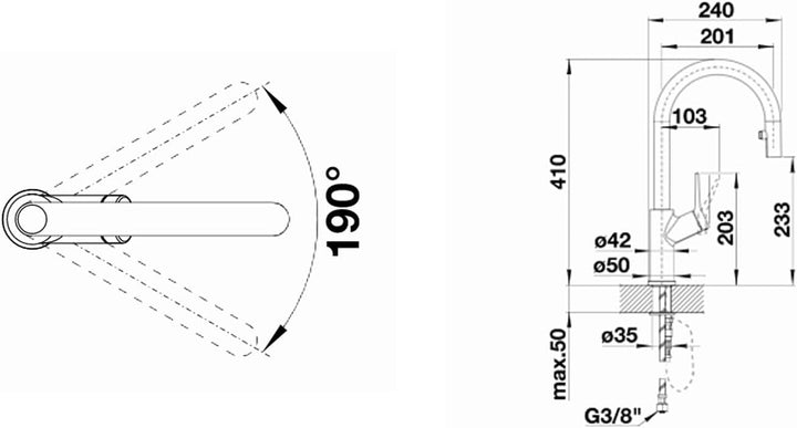 • Bogenförmiger, hoher Auslauf für leichtes Befüllen von Töpfen und Vasen