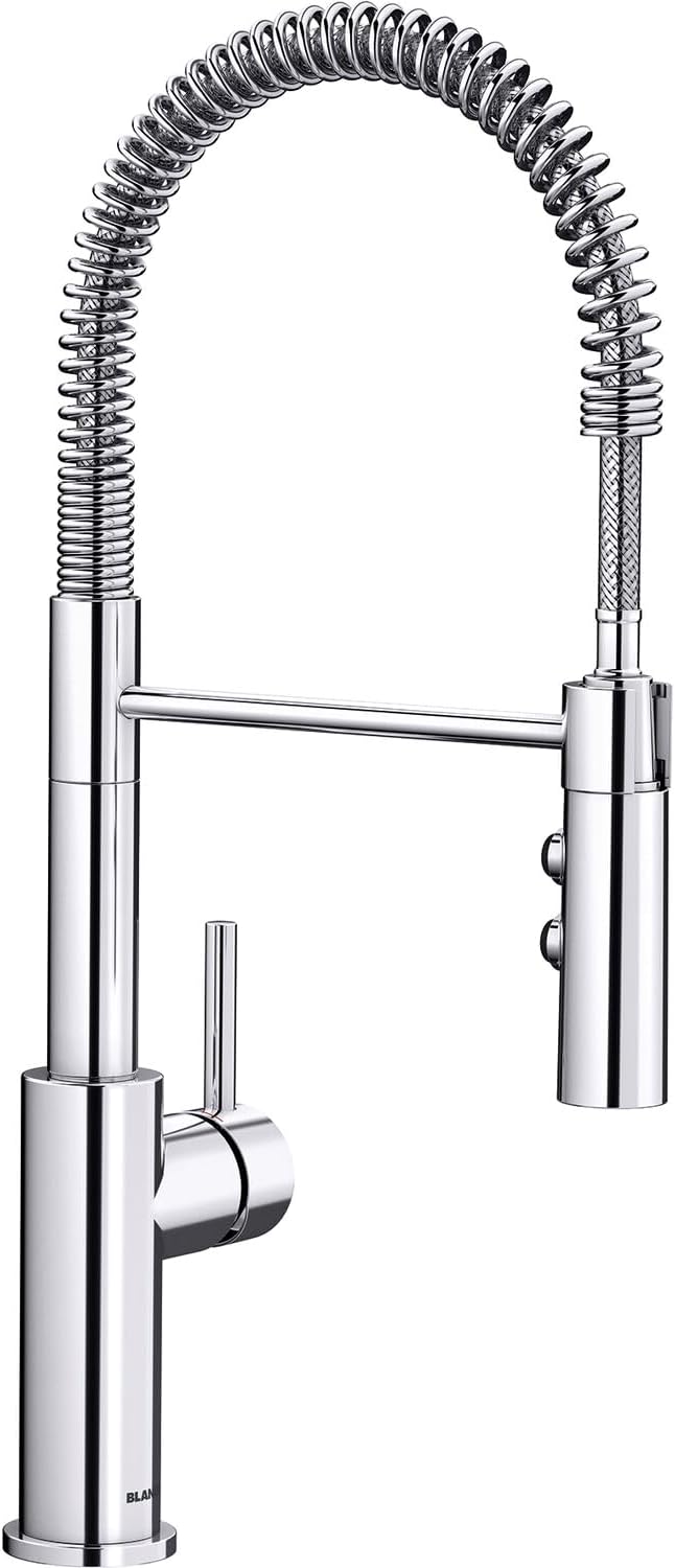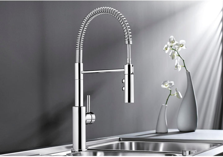 - Elegant, ergonomisch und multifunktional: Chrom-Armatur für die Küche in Semi-Profi Design mit bogenförmigem Auslauf und umschliessender Edelstahlfeder