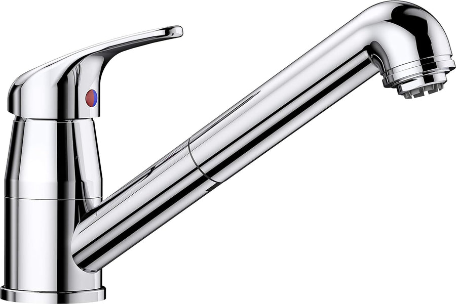 - Kompakte Niederdruckarmatur in Chrom: Kommt dann zum Einsatz, wenn ein Warmwasserspeicher oder Boiler die Warmwasseraufbereitung unter der Spüle übernimmt