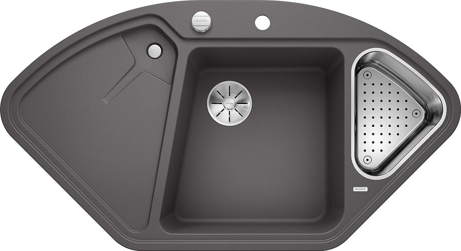 BLANCO DELTA II | SILGRANIT felsgrau | Einbauart: Einbau von Oben | Hauptbecken links | mit Ablauffe