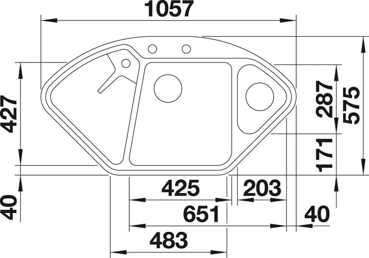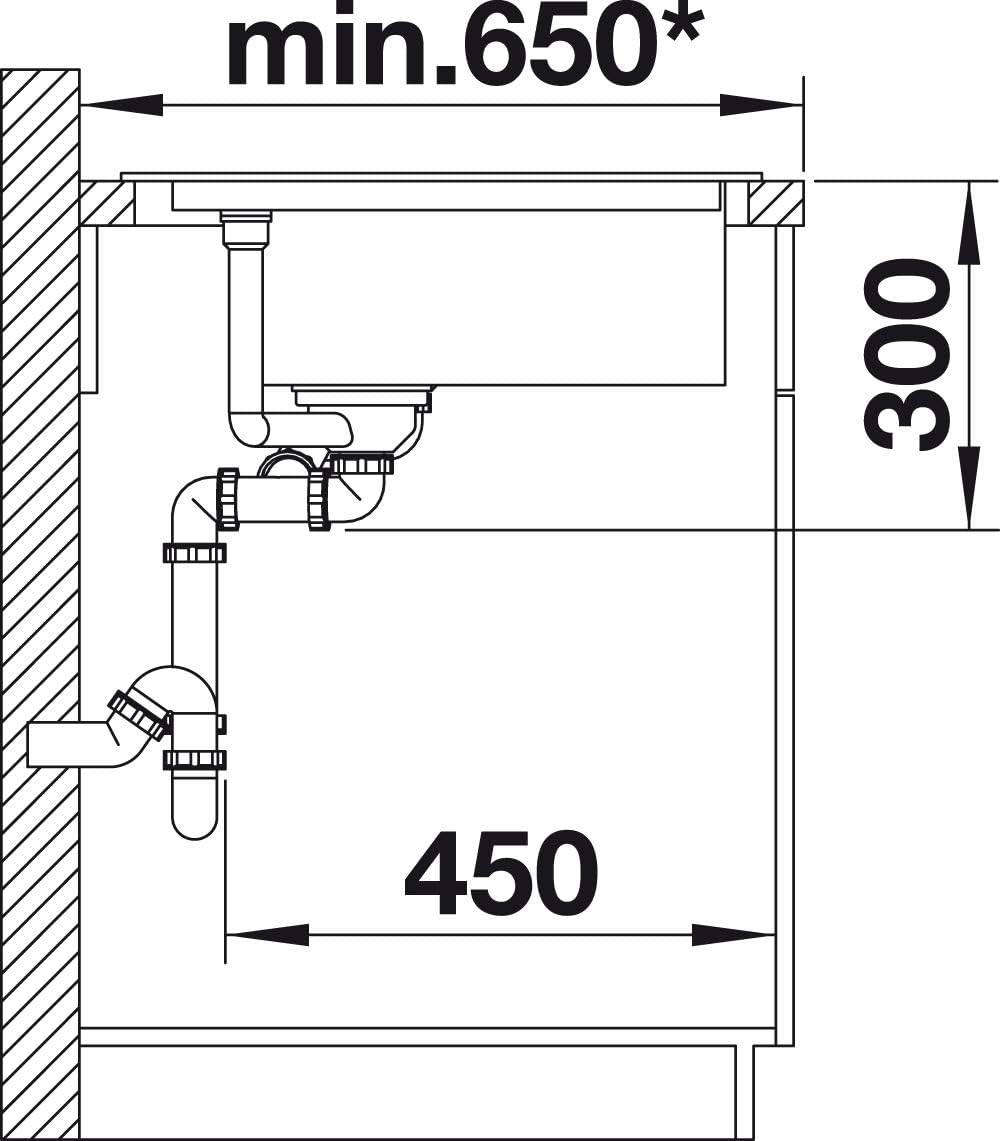 - Für Eck-Unterschränke - 90 x 90 cm / bei Zeileneinbau: Unterschrankbreite 80 cm –Arbeitsplattentiefe mind. 65 cm - Aussen-Abmessungen 1042 x 560 mm / Beckentiefen 183 + 120 mm