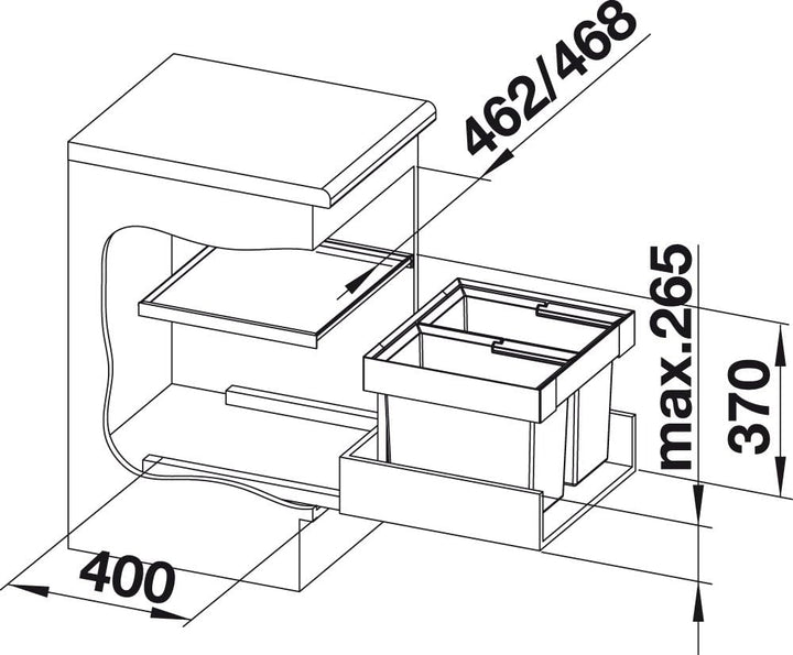 - Abfallsystem mit 2 Abfalleimern (2 x 19 l); für vorhandene Auszüge und Schubladen im 50 cm Unterschrank