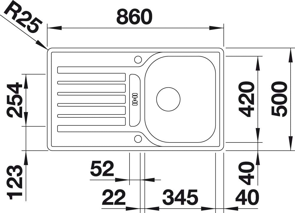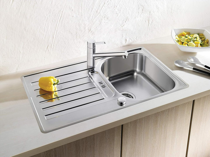 - Geradlinige Einbauspüle: Für 45 cm breite Unterschränke mit integrierter Abtropffläche und Zusatzausguss
