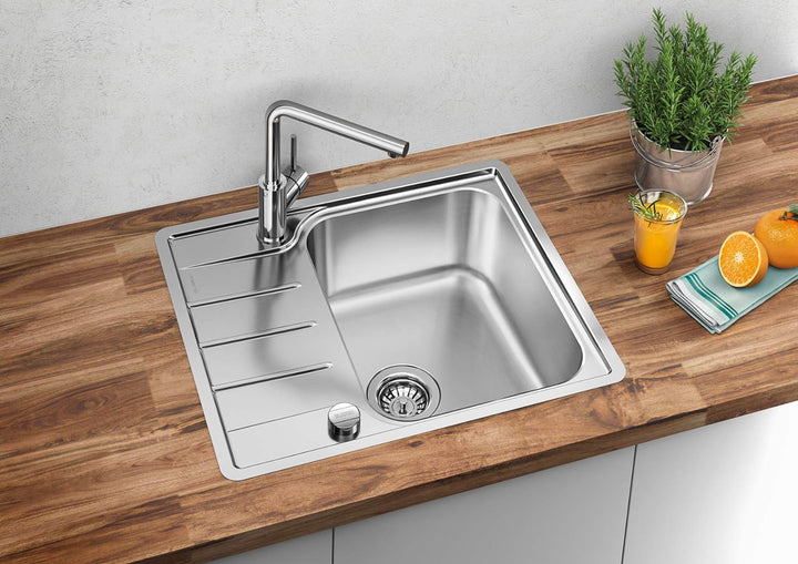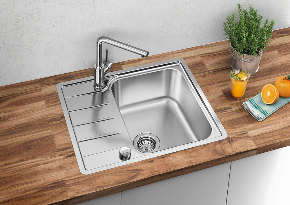 - Rechteckige Einbauspüle: Passend für 45 cm breite Unterschränke mit verkürzter Abtropffläche – in elegantem Edelstahl-Bürstfinish