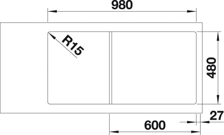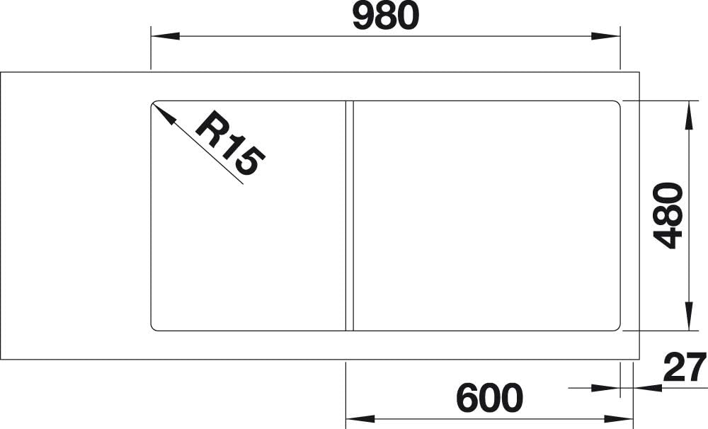 • Rechteckige Einbauspüle: Passend für 60 cm breite Unterschränke mit extra grossem Becken – in elegantem Edelstahl-Bürstfinish