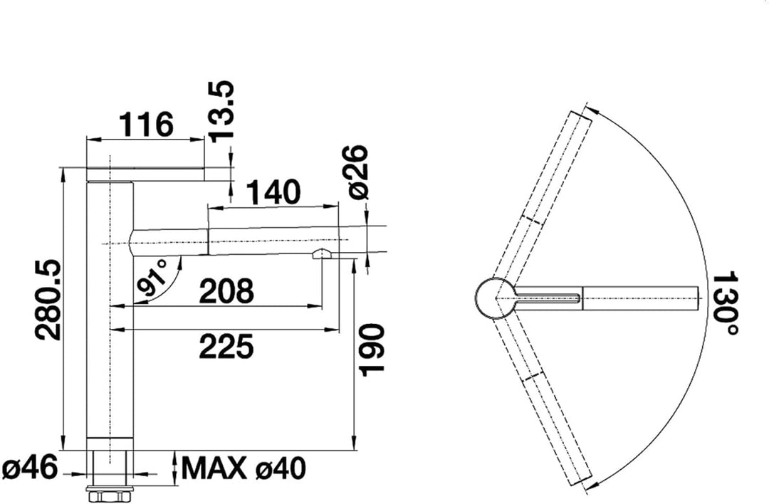 • Klar. Kompromisslos. Konsequent: ein eleganter Premium-Einhebelmischer mit ausziehbarer Brause (Metallausführung) und 130° schwenkbarem Auslauf - für die exklusive Küchengestaltung