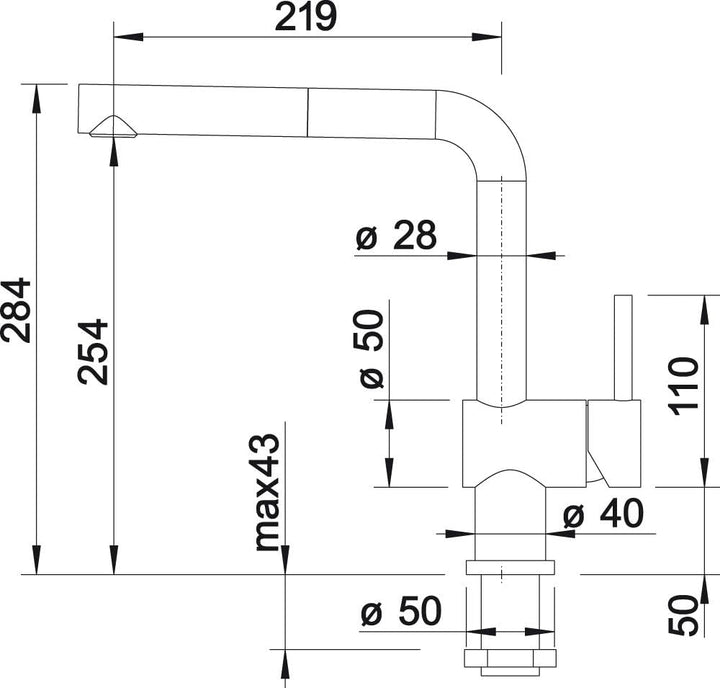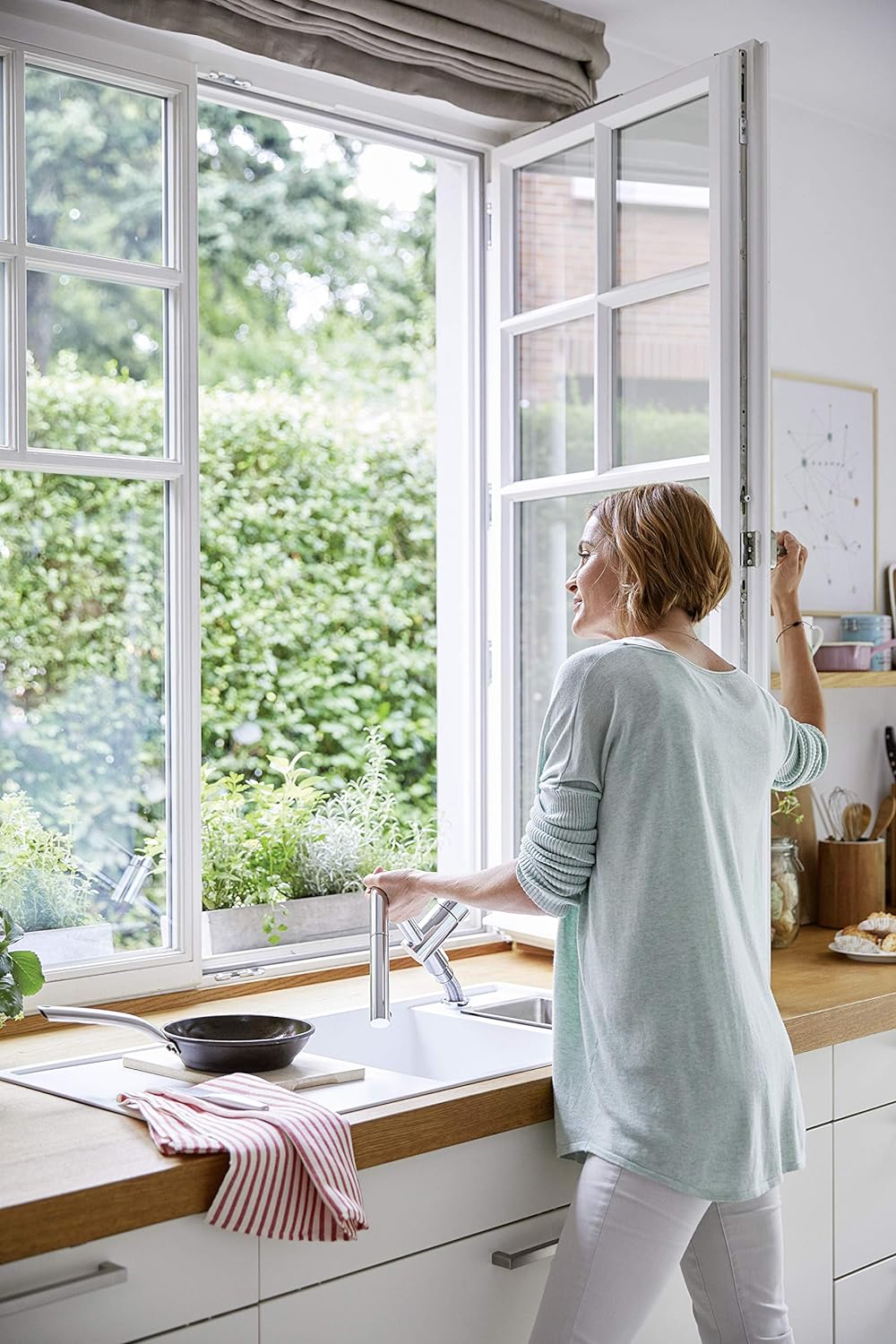 - Grosser Aktionsradius dank schwenkbarem Auslauf und ausziehbarer Schlauchbrause