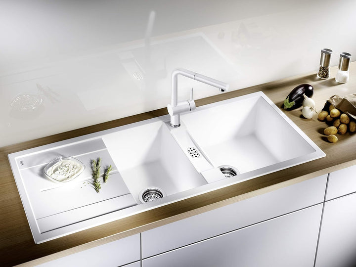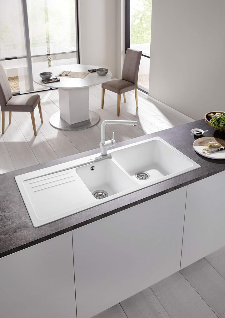 - Farbiger Einhandmischer in Silgranitweiss: Color-Ausführung in perfekter Abstimmung zu farbigen Spülen und Becken aus SILGRANIT