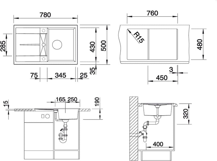 BLANCO METRA 45 S | SILGRANIT weiss | Einbauart: Einbau von Oben | reversibel | mit Ablauffernbedien