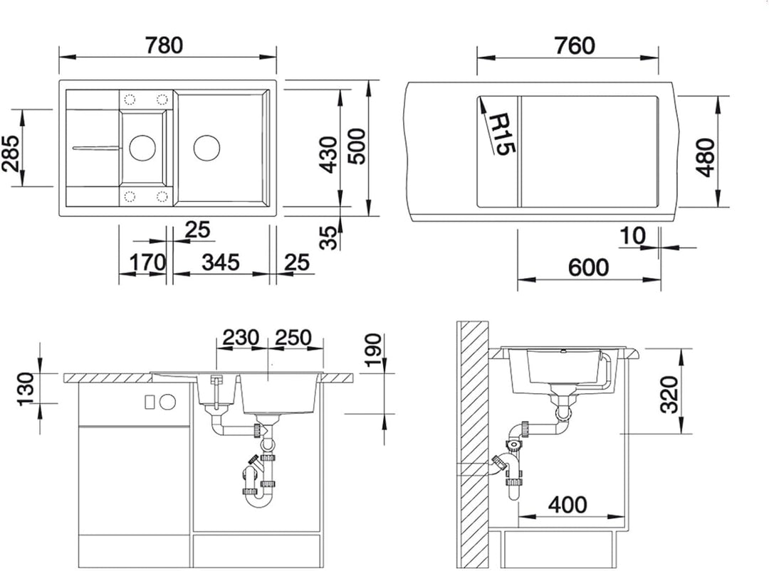 - Funktionalität und optimale Raumnutzung: Das tiefe Becken erleichtert das Spülen sperrigen Geschirrs, während mit der verkürzten Abtropffläche Arbeitsfläche gespart wird