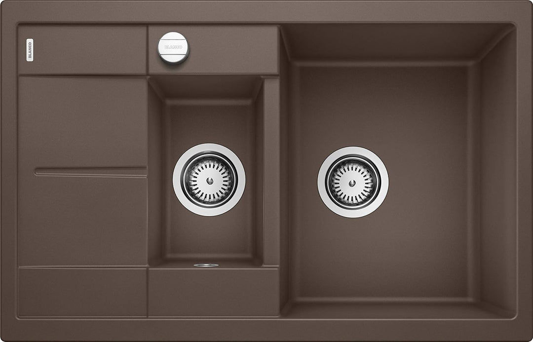 - Einbauspüle in Cafe: Mit verkürzter Abtropffläche für 60 cm breite Unterschränke – in weiteren SILGRANIT-Farben erhältlich und farblich auf die passenden BLANCO Armaturen abstimmbar