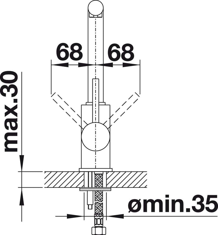 - Einfache Montage: Flexible Anschlussschläuche mit 350 mm Länge und 38“ Mutter – Hahnlochbohrung mit 35 mm Durchmesser benötigt – fester Stand in Edelstahl-Spülen durch Stabilisierungsplatte