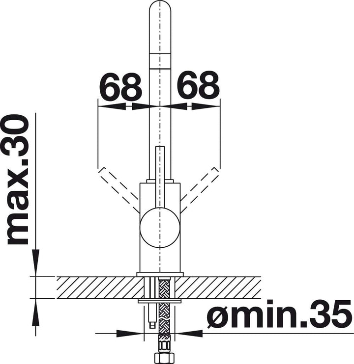 • Einfache Montage: Flexible Anschlussschläuche mit 350 mm Länge und 3/8“ Mutter – Hahnlochbohrung mit 35 mm Durchmesser benötigt – fester Stand in Edelstahl-Spülen durch Stabilisierungsplatte