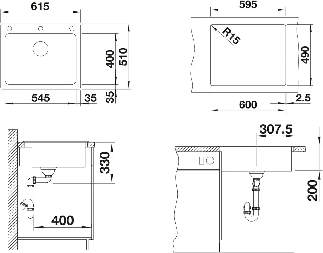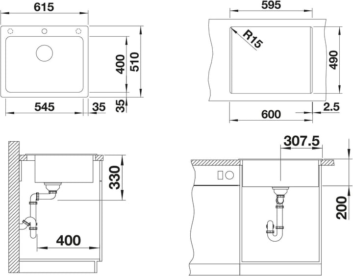 - Sanfte Eckradien im Spülbecken zur einfachen Reinigung