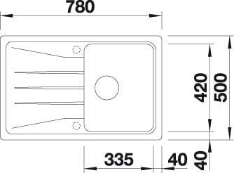 - für 45 cm breite Unterschränke - Aussen-Abmessungen 780 x 500 mm / Beckentiefe 190 mm / Ausschnitt 760 x 480 mm