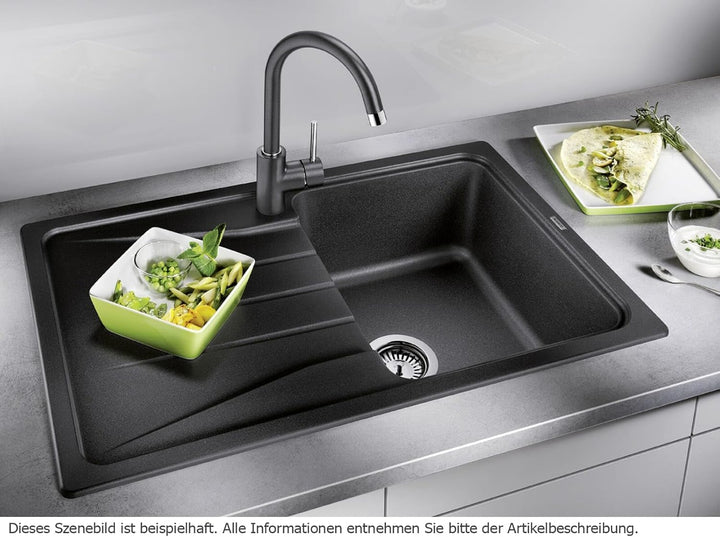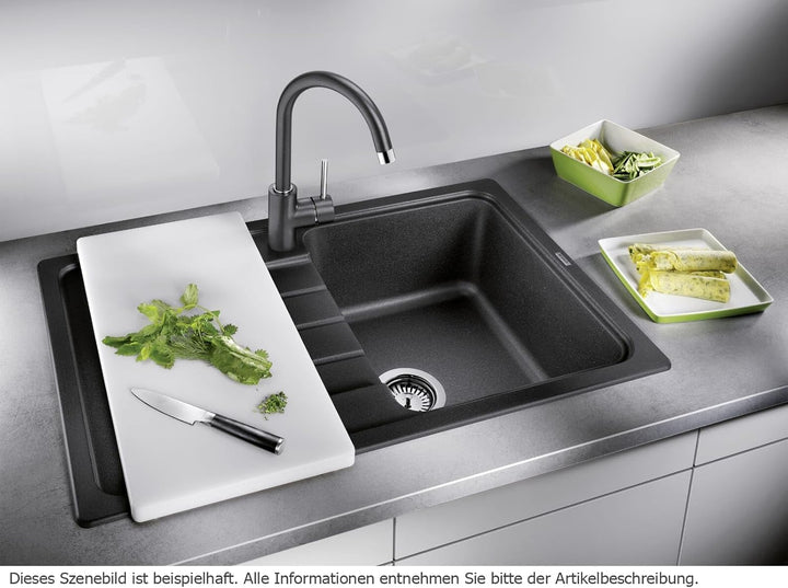 - Modernes eigenständiges Design - zugeschnitten auf zeitgemässe Küchen: Komfortspüle mit geräumigem Spülbecken, grosszügiger Tropffläche und markanter Batteriebank