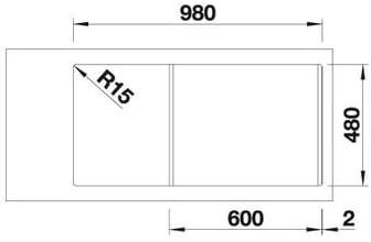 - für 60 cm breite Unterschränke - Aussen-Abmessungen 1000 x 500 mm / Beckentiefe 190 mm / Ausschnitt 980 x 480 mm