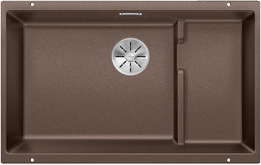 - Ein Becken, zwei Funktionsebenen: Unterbauspüle in Cafe für 80 cm breite Unterschränke mit integrierter Funktionsebene zum Abstellen und Abtrocknen