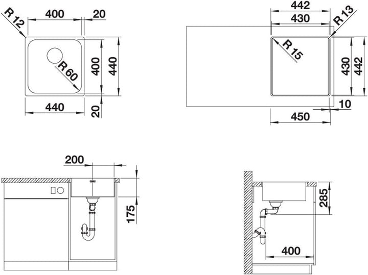Variante: 45 cm Unterschrank Einbau von oben Ohne Armaturenbank