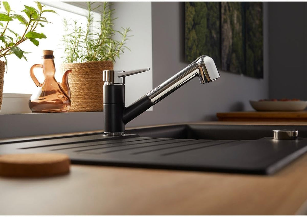 • Einhebelarmatur für leichte Bedienung und flexible Küchenplanung