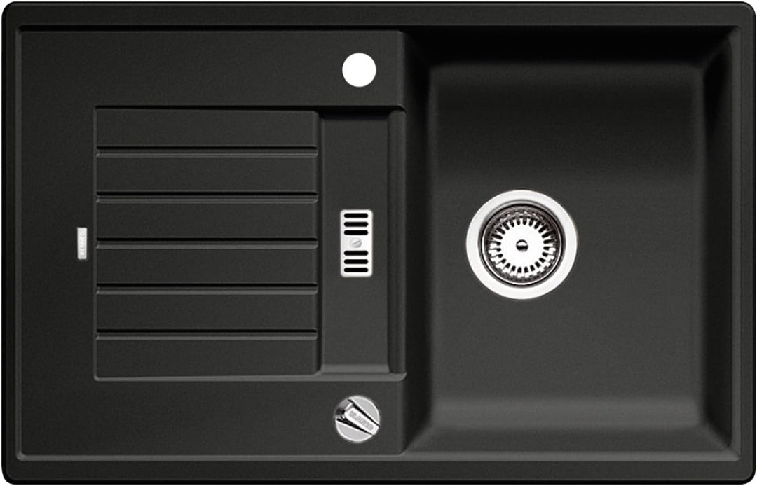 - Montagehinweise: Das Becken ist reversibel und lässt sich sowohl links als auch rechts von der Abtropffläche ausrichten – mit vorgefrästen Lochbohrungen zum Durchschlagen für die Armatur