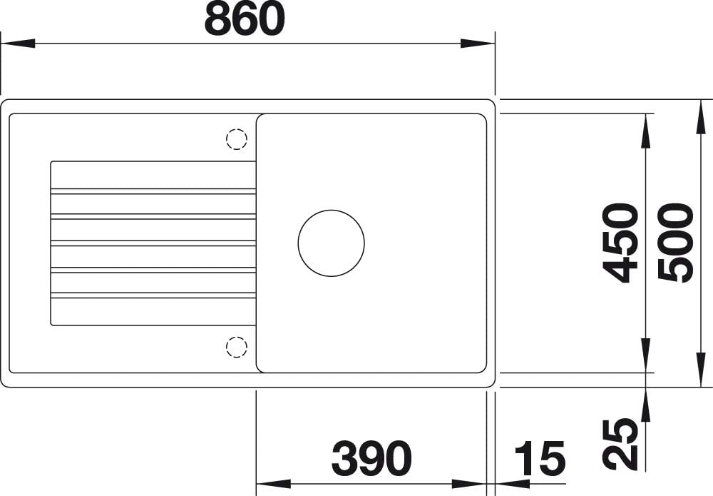 - Montagehinweise: Das Becken ist reversibel und lässt sich sowohl links als auch rechts von der Abtropffläche ausrichten – mit vorgefrästen Lochbohrungen zum Durchschlagen für die Armatur