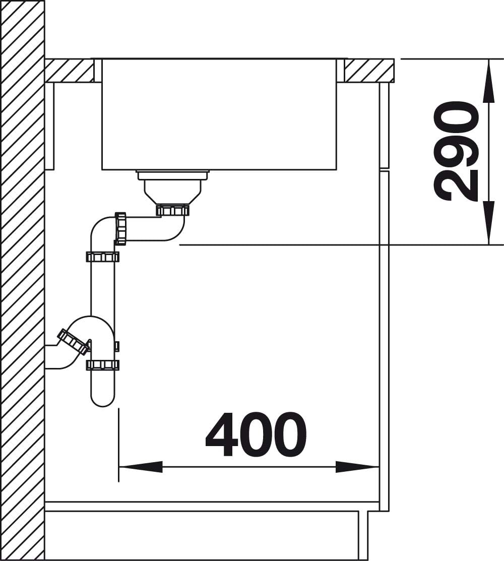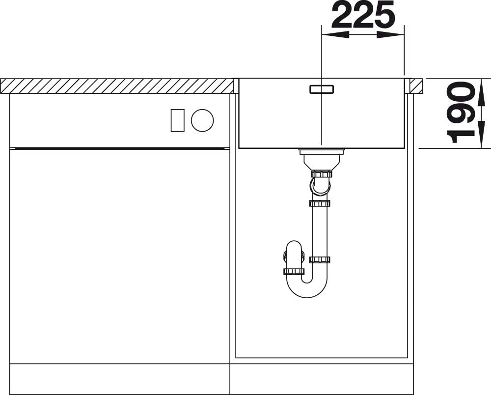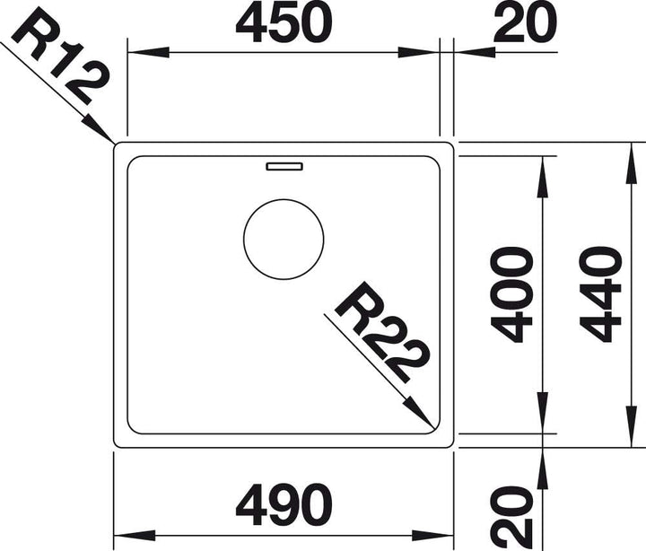 - Aussen-Abmessungen 490 x 440 mm / Beckentiefe 190 mm / Mindestbreite des Unterschranks: 50 cm - detaillierte Informationen zum Ausschnitt erhalten Sie auf der BLANCO Website