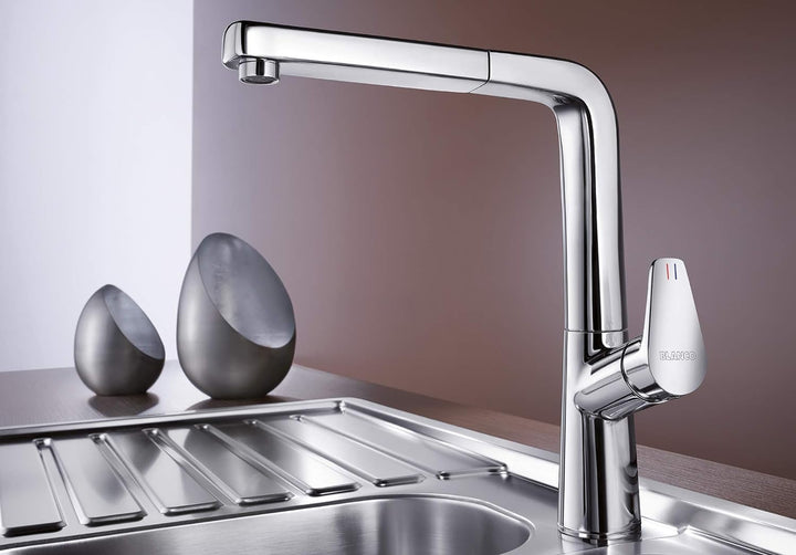 - Premium-Einhebelmischer (Hochdruckausführung) mit ausziehbarer Schlauchbrause in hochwertiger Metallausführung; auch in SILGRANIT Look – die perfekte Ergänzung für Granitspülen von BLANCO