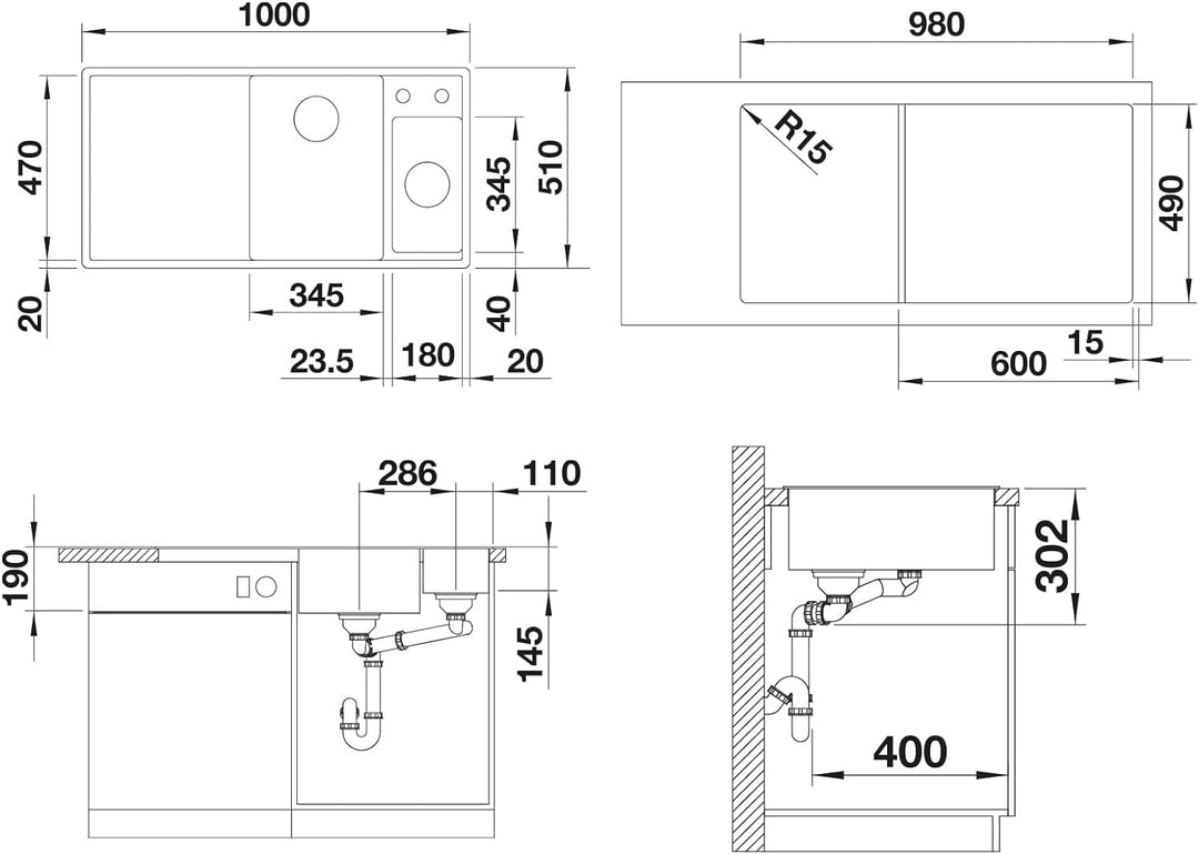 BLANCO AXIA III 6 S | SILGRANIT felsgrau | Einbauart: Einbau von Oben | Hauptbecken links | mit Holz