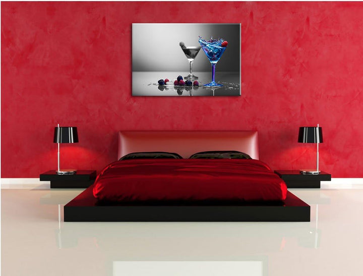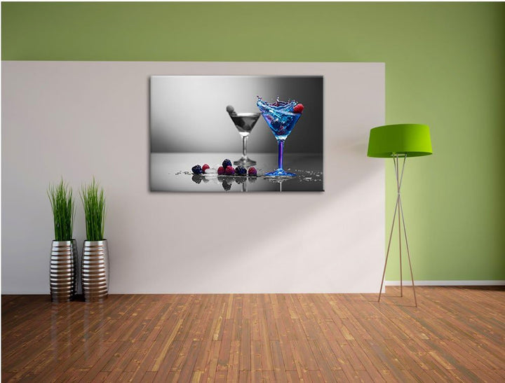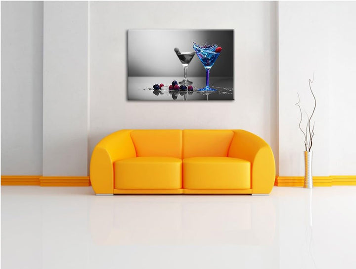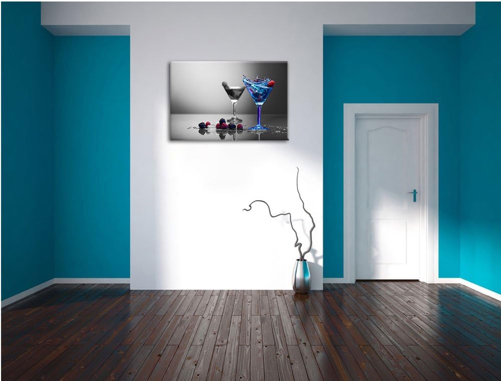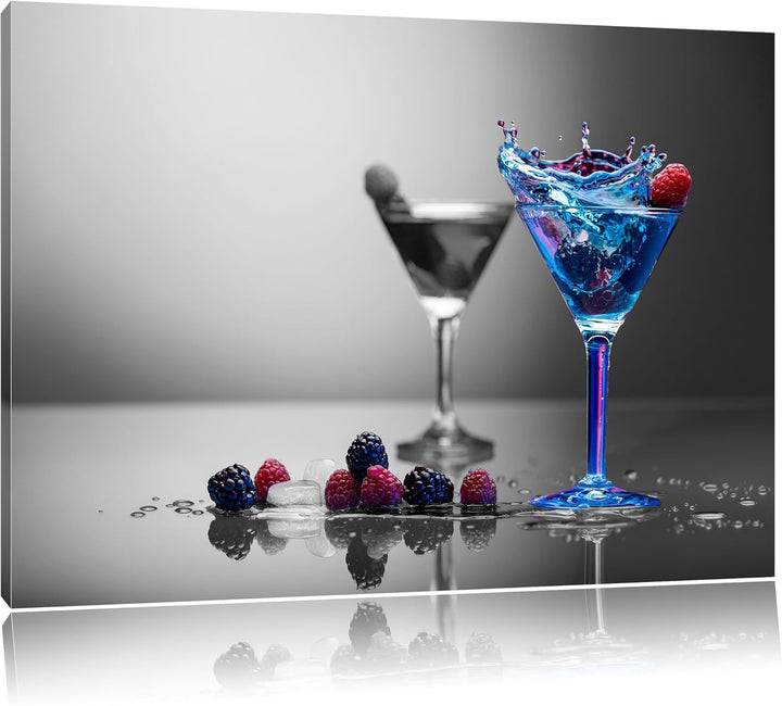 Blauer leckerer Cocktail schwarz/weiss Format: 100x70 auf Leinwand, XXL riesige Bilder fertig gerahm