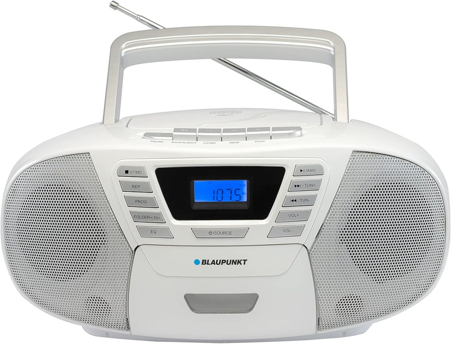 - MULTIFUNKTIONSTALENT: Der Bluetooth CD Player kommt mit Toploader Funktion und Kassetten-Spieler daher. Der tragbare CD Spieler ist mit einem AUX In Anschluss und einem USB Eingang ausgestattet, um ganz einfach externe Audioquellen anschliessen und