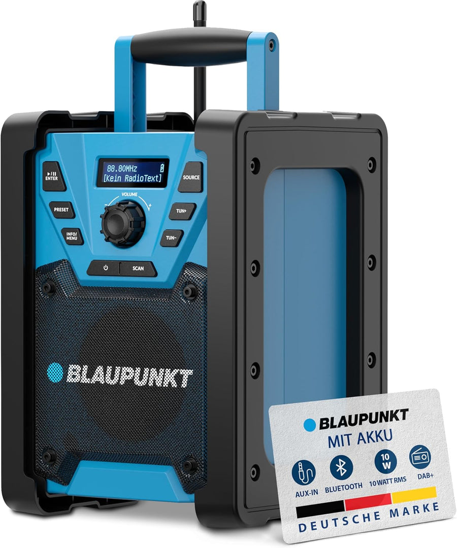 - LEISTUNGSSTARKES BAUSTELLENRADIO: Das tragbare Baustellen Radio BSR 300 liefert mit 10 Watt RMS einen satten und klaren Klang für jede Baustelle, Garage, Werkstatt und Garten. Kabellos verbindet sich der Speaker zur Musikwiedergabe nicht nur mit dem