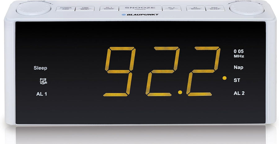 BLAUPUNKT CLR 180 WH Uhrenradio mit Wecker, AUX-IN, Stereo PLL FM-Lautsprecher, 2 Weckzeiten, Snooze