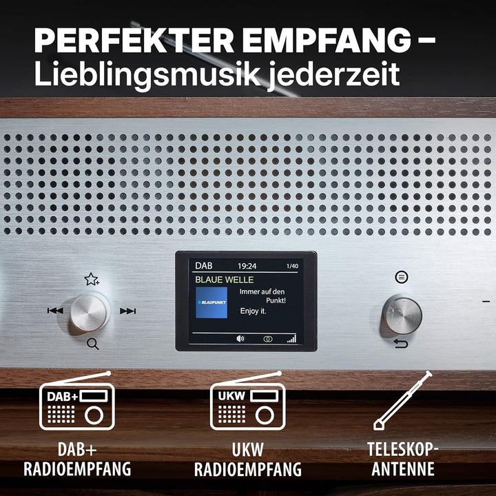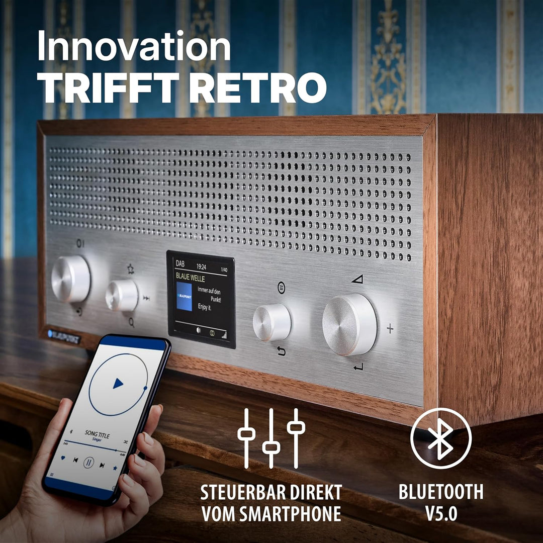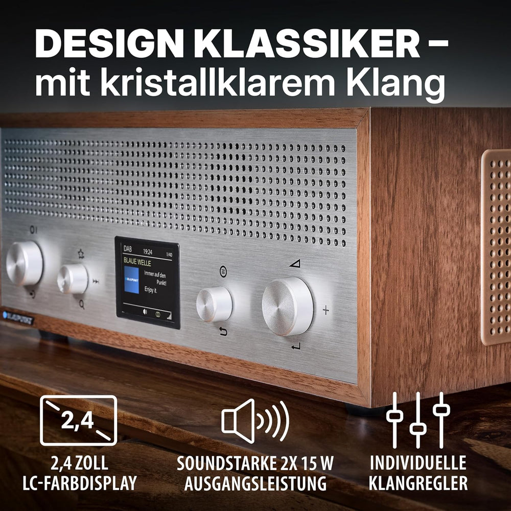 - WAS SIE ERHALTEN: Blaupunkt Nostalgieradio mit 15 Watt (RMS) Ausgangsleistung mit 2-Wege-Lautsprecher-System und beleuchtetem LC-Display. Das Ganze wird mit einem Netzteil, Bedienungsanleitung sowie Garantiekarte geliefert.
