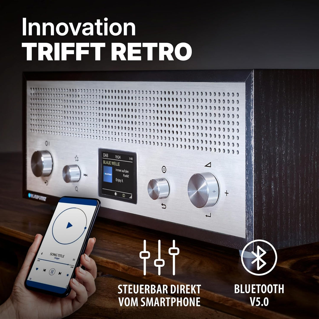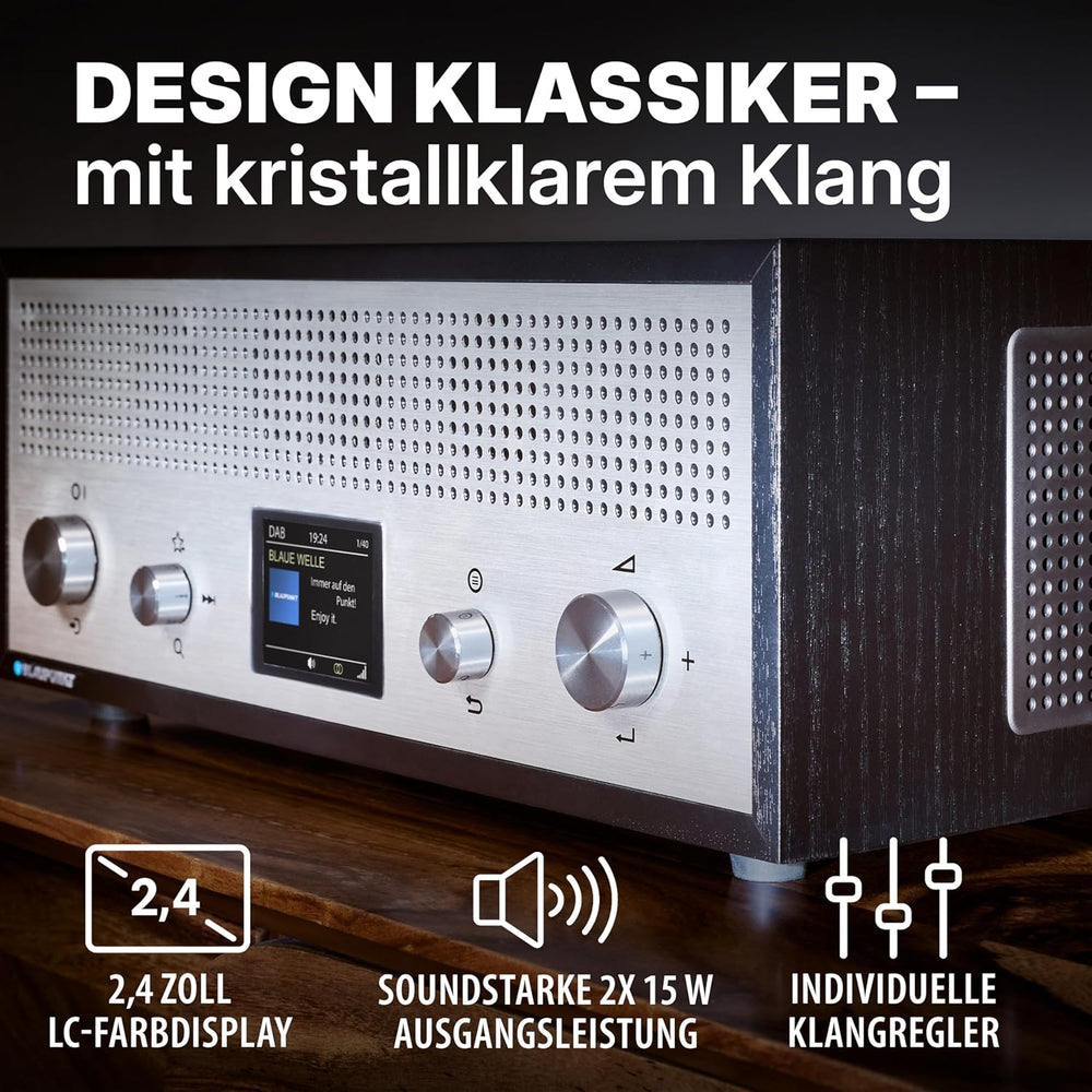 - WAS SIE ERHALTEN: Blaupunkt Nostalgieradio mit 15 Watt (RMS) Ausgangsleistung mit 2-Wege-Lautsprecher-System und beleuchtetem LC-Display. Das Ganze wird mit einem Netzteil, Bedienungsanleitung sowie Garantiekarte geliefert. Zudem erhalten Sie