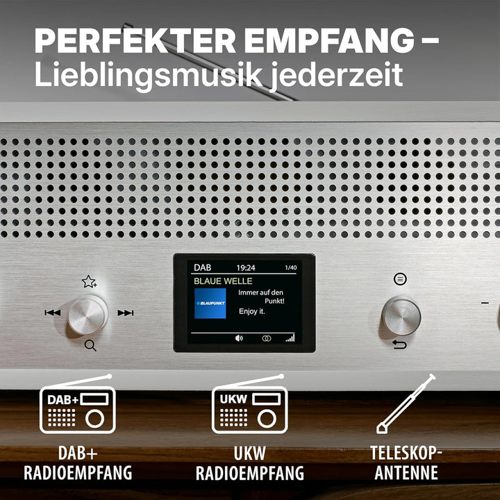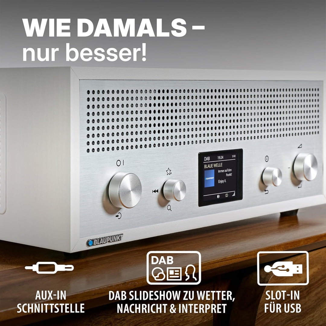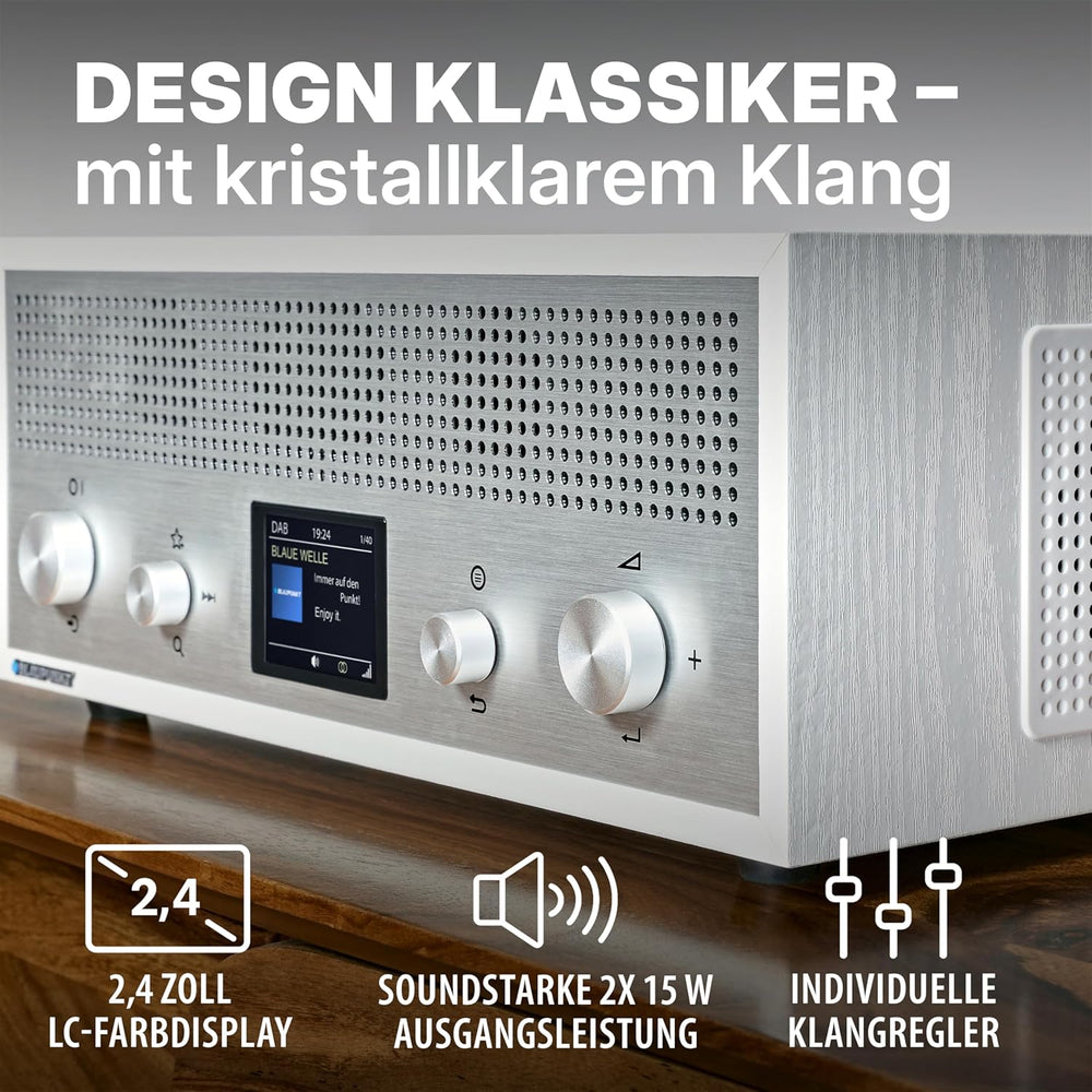 - WAS SIE ERHALTEN: Blaupunkt Nostalgieradio mit 15 Watt (RMS) Ausgangsleistung mit 2-Wege-Lautsprecher-System und beleuchtetem LC-Display. Das Ganze wird mit einem Netzteil, Bedienungsanleitung sowie Garantiekarte geliefert.