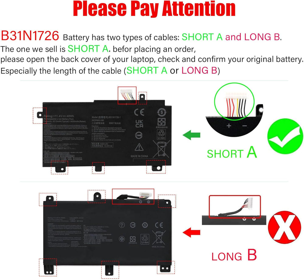 - Kompatibilität mit ursprünglicher Akku: B31N1726 B31N1726-1 B31BN91 B31BNE1 B31BNEH 0B200-02910100, 0B200-03270100, 0B200-03270200, 0B200-02910200, 0B200-02910000, 0B200-03400000