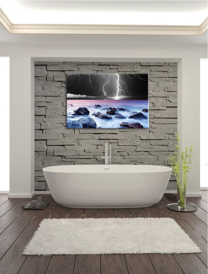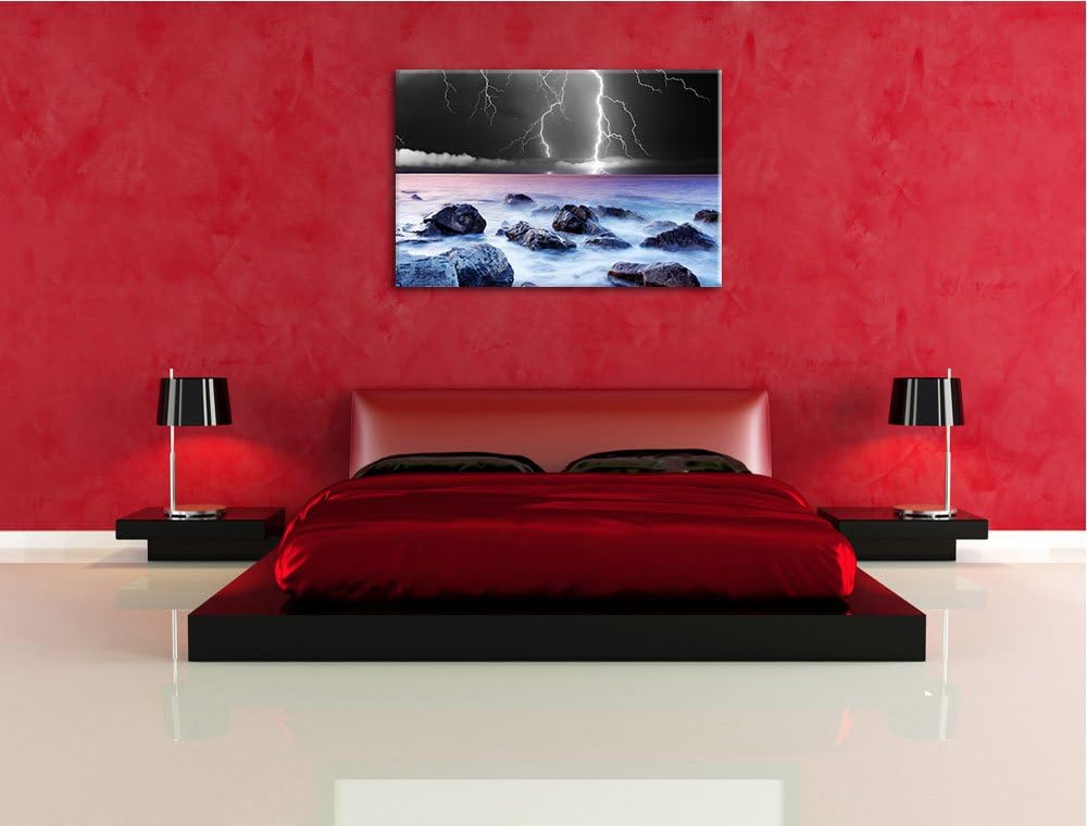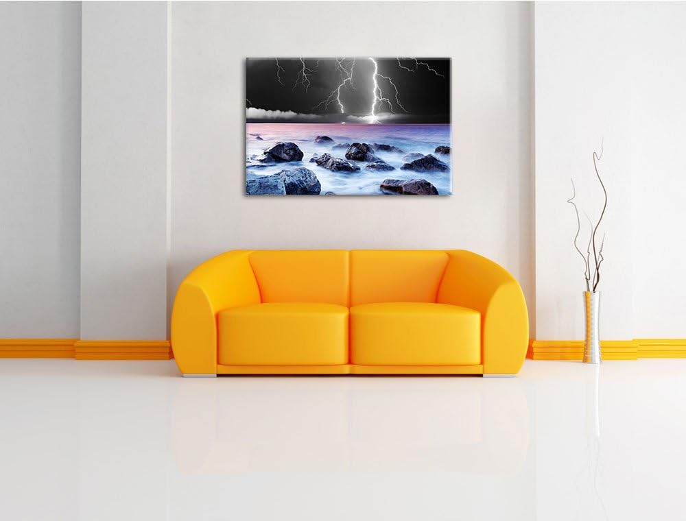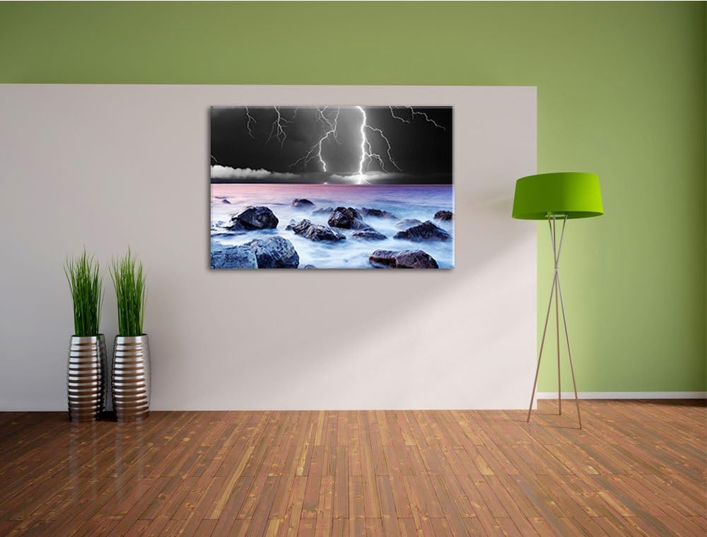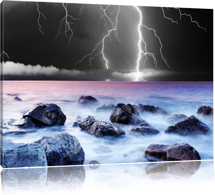 Blitze über dem Meer schwarz/weiss Format: 100x70 auf Leinwand, XXL riesige Bilder fertig gerahmt mi