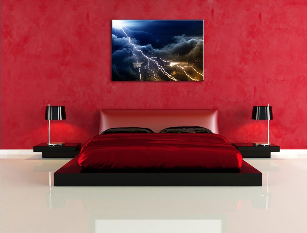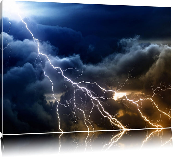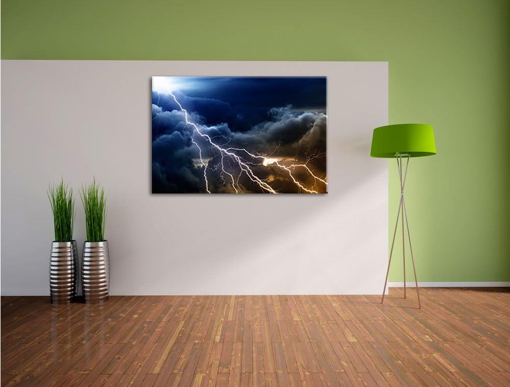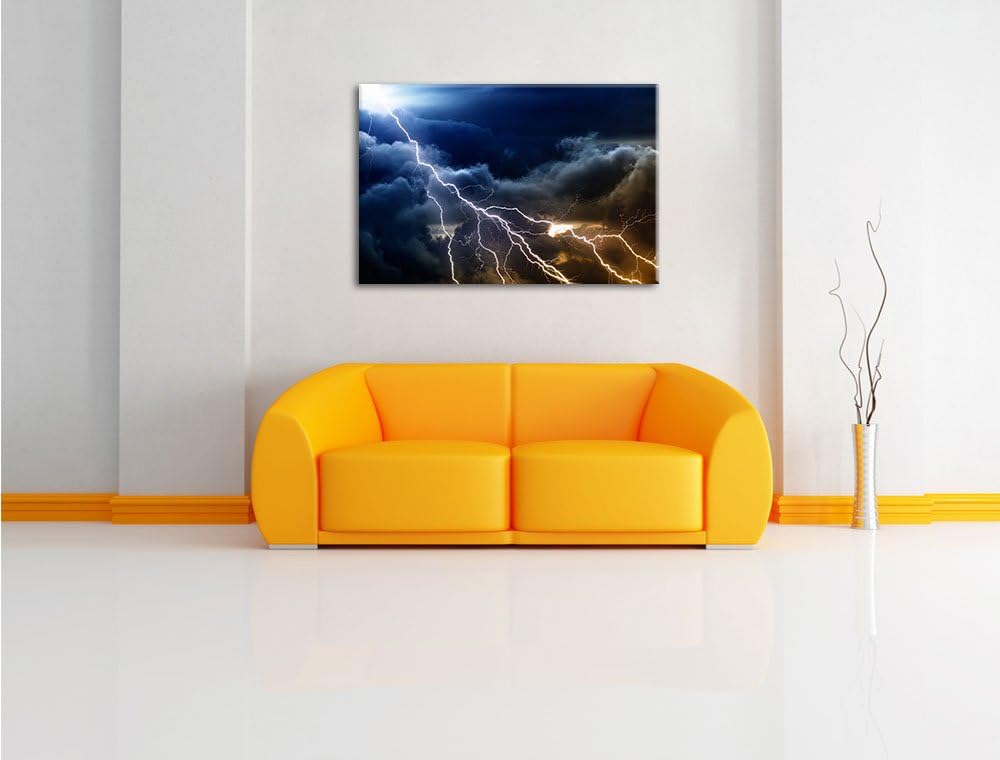 Blitzeinschlag am Himmelszelt Format: 100x70 auf Leinwand, XXL riesige Bilder fertig gerahmt mit Kei