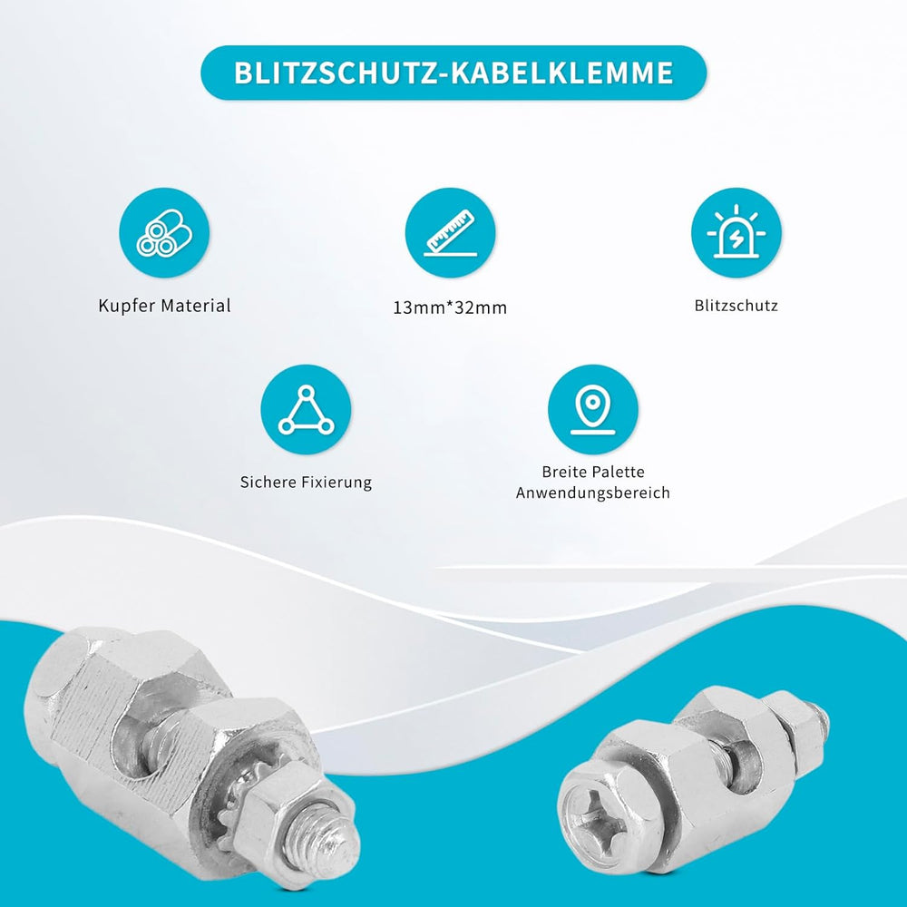 • COPPER MATERIAL:Grounding Schutz Draht Clip aus Kupfer, hohe Härte ist nicht leicht zu verformen, nicht rosten, langlebig. Es gibt eine Zinnschicht auf der Oberfläche, die die Ästhetik der Erdungsschutzdrahtklemme erhöht. Ausserdem entfällt die