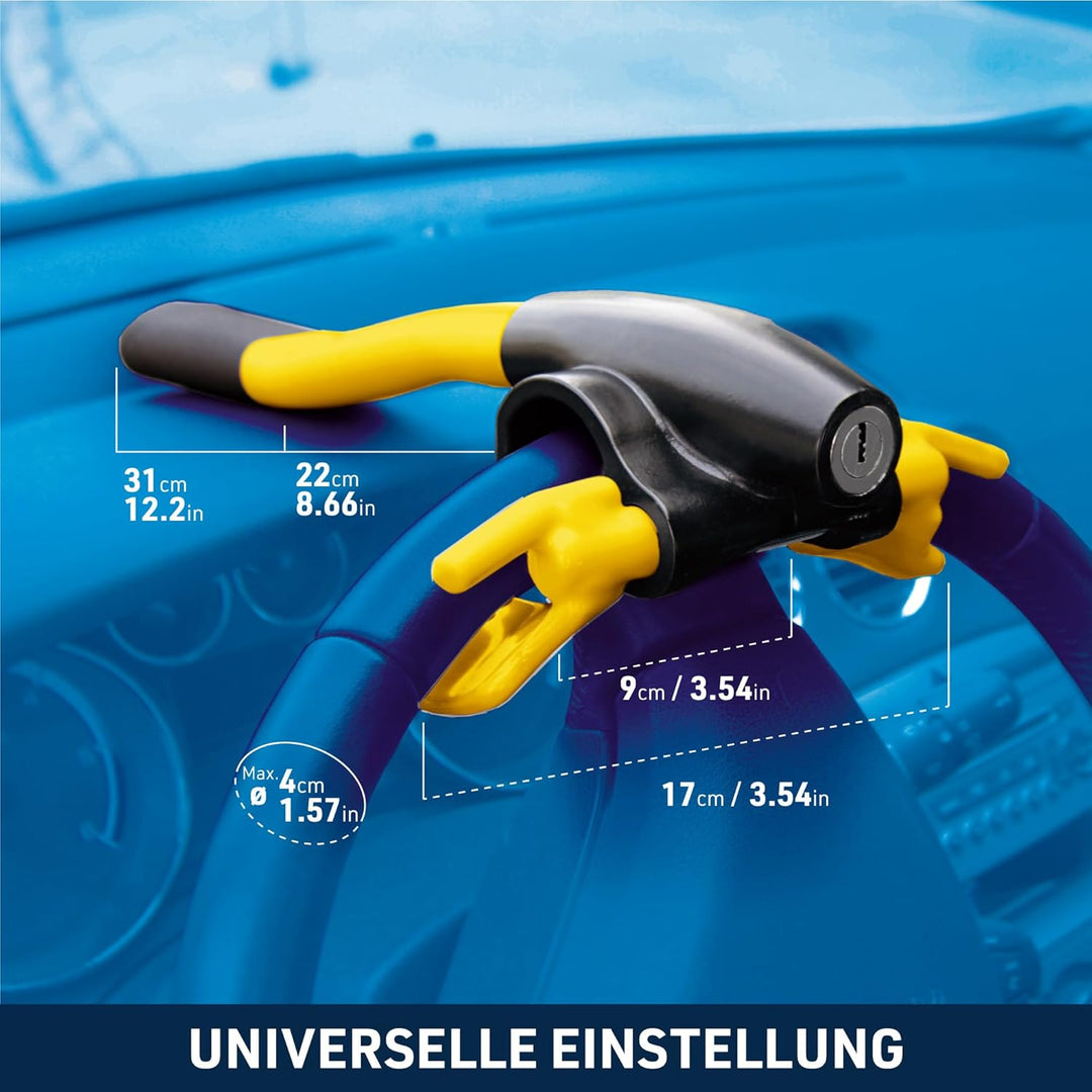 - SICHER UND ABSCHRECKEND: Sicher, besonders wenn Sie es um die Speiche arretieren und abschreckend durch seine Position auf dem Armaturenbrett und seine auffällige gelbe Farbe.