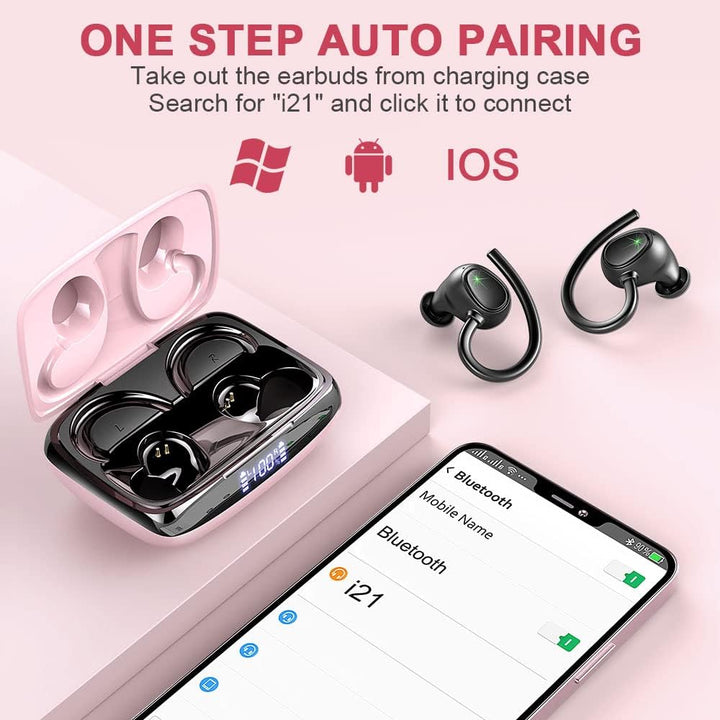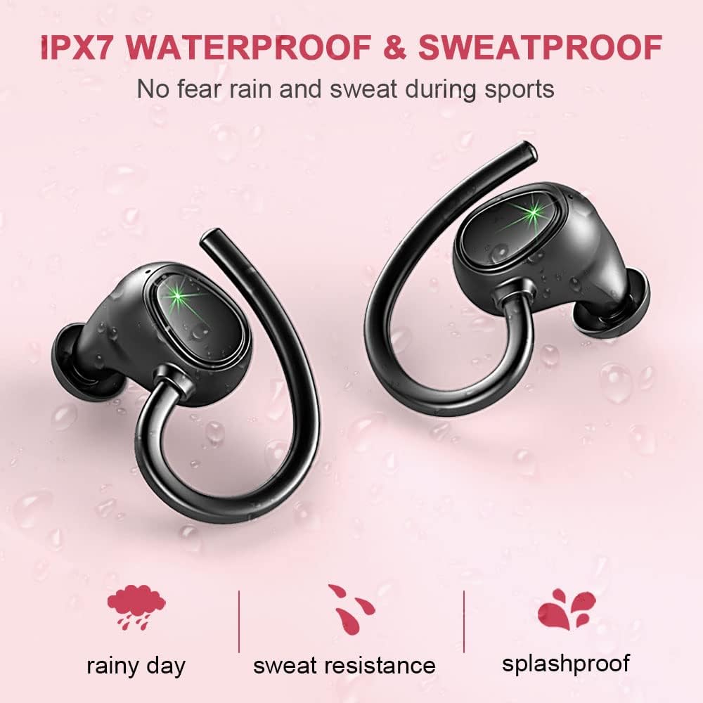 - Sport-Ohrbügel und IP7 Wasserdicht: Mit dem Sport Kopfhörer bluetooth des kabellose Kopfhörer können Sie den Winkel jederzeit nach Bedarf an Ihr Ohr anpassen. Ein Headset bluetooth, der sich nie Sorgen machen muss, dass er herunterfällt, der beste