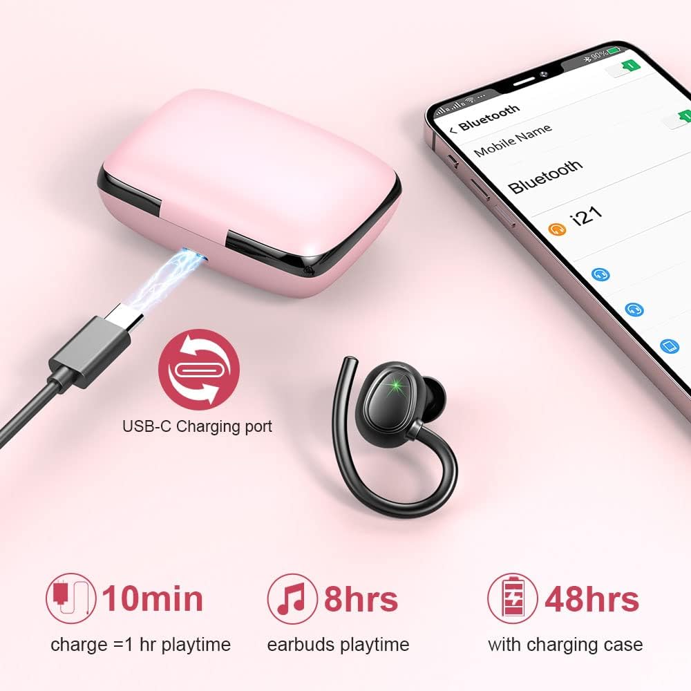 - 48 Stunden Spielzeit und USB-C Schnellladen: Die einzelne Wiedergabezeit der Kopfhörer bluetooth sport beträgt 8 Stunden, und die tragbare Ladebox kann das in ear Kopfhörer auch 5 Mal für insgesamt 48 Stunden Wiedergabezeit aufladen, was Ihren
