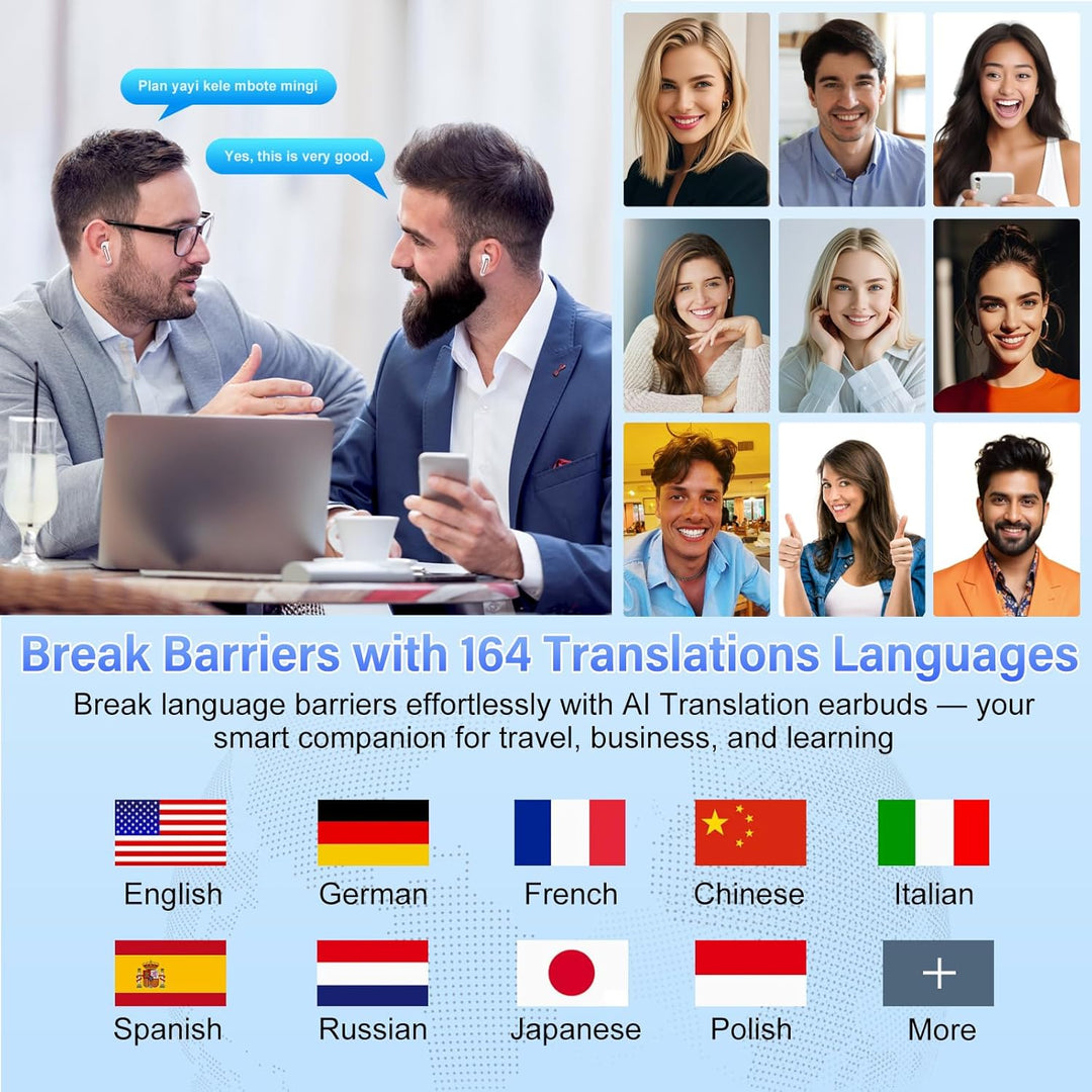 - All-in-One-Übersetzungskopfhörer | Kommunikation ohne Grenzen: ki übersetzer kopfhörer kombinieren Echtzeit-Übersetzung, Anrufentgegennahme und Musikwiedergabe. Sie unterstützen präzise Zwei-Wege-Übersetzungen in bis zu 164 Sprachen – darunter
