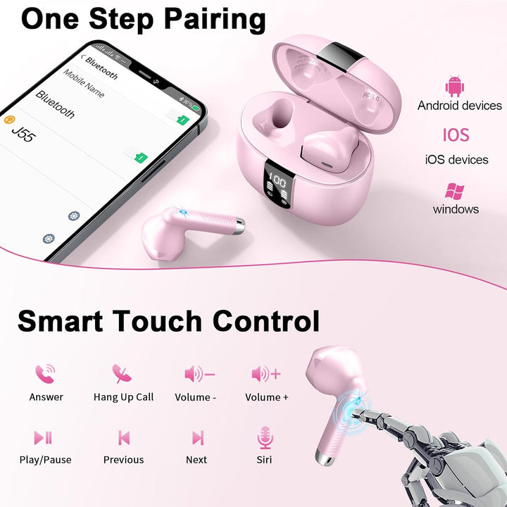 - Immersive Sound Kopfhörer mit ENC: J55 bluetooth Kopfhörer mit 13mm Graphen-dynamische-membran und der AAC/SBC-Audiocodierungstechnologie, fängt es jedes Detail der Musik ein und überträgt satte Klänge mit knackigen Höhen und ordentlichem Bass.
